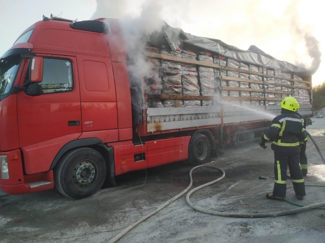 Вони повідомляють, що в результаті полум’я знищило 4,5 тонн і пошкодило 1,7 тонн деревного вугілля в палетах, а також пошкодило тентове покриття причепа вантажного автомобіля марки «VOLVO».