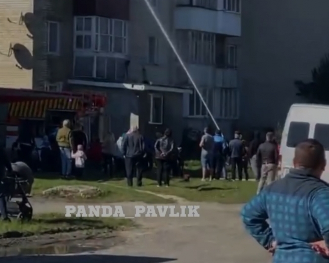 Так, на опублікованому відео видно пожежну машину і рятувальників, що струменем гасять вогонь на балконі 4-го поверху.