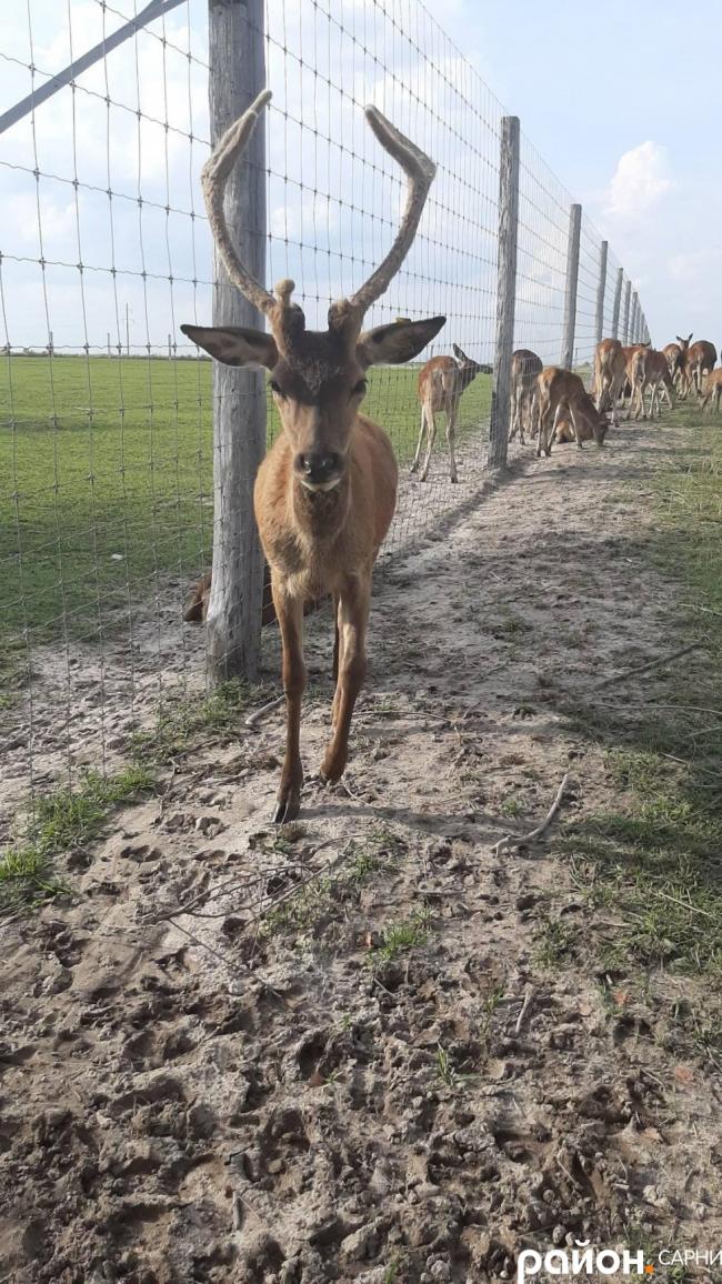 У селі Костянтинівка, що за декілька кілометрів від Сарн, облаштували ферму оленів.