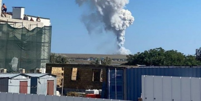 Загалом очевидці повідомляють, що чули сім вибухів у районі села Оленівка.