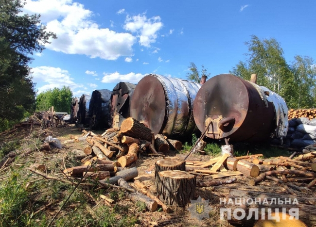 Слідчі вилучили 120 метрів кубічних лісопродукції породи сосна, 150 мішків з вугіллям та шість металевих бочок для випалювання деревного вугілля