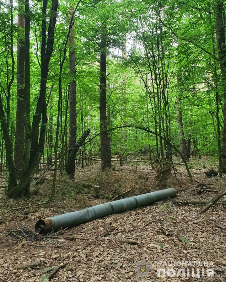 Попередньо, у лісовий масив потрапила ракета з реактивної системи залпового вогню під час ворожих обстрілів Житомирщини, що відбувались раніше. Майже 6-метровий корпус реактивної ракети забрали рятувальники.