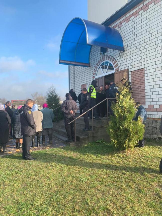 Віруючі УПЦ викликали поліцію і прийшли на територію церковного подвір’я, аби зарадити ситуації, так про ситуацію у селі повідомляє РІВНЕ. Голос Церкви.