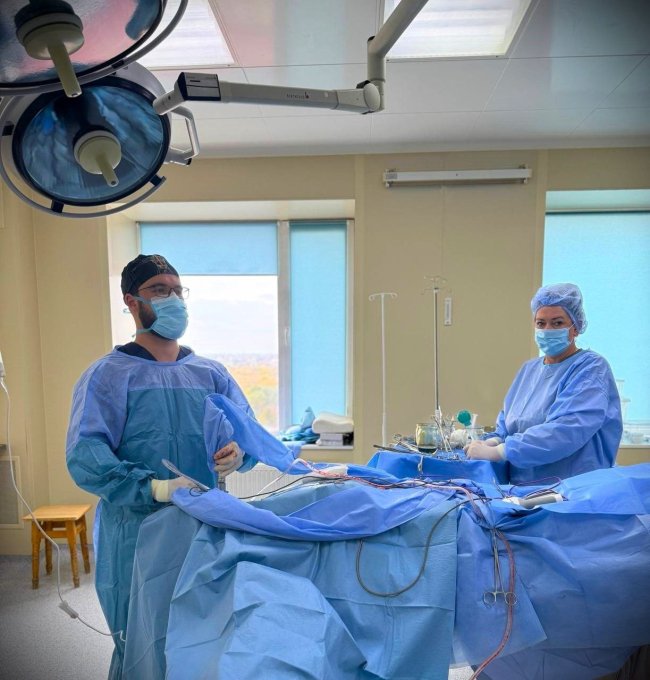 – На цих фото – лікар хірург-онколог Олександр Боярський, він на новому обладнанні виконує відеомедіастиноскопію та біопсію лімфовузлів середостіння. Раніше визначити тип пухлини не могли іншими методами. Тепер пацієнти з підозрами на пухлини легень чи лімфатичних вузлів можуть проходити найсучаснішу діагностику прямо в обласному протипухлинному центрі, – пояснив Карауш.