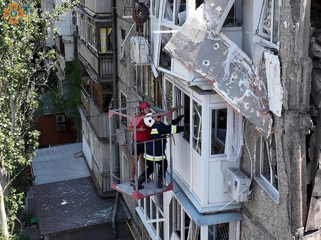 У Миколаєві, у знищеному росіянами будинку, в одній із квартир на четвертому поверсі лишився лабрадор. Про це рятувальникам повідомив власник собаки, його раніше змогли евакуювати за допомогою автодрабини.
