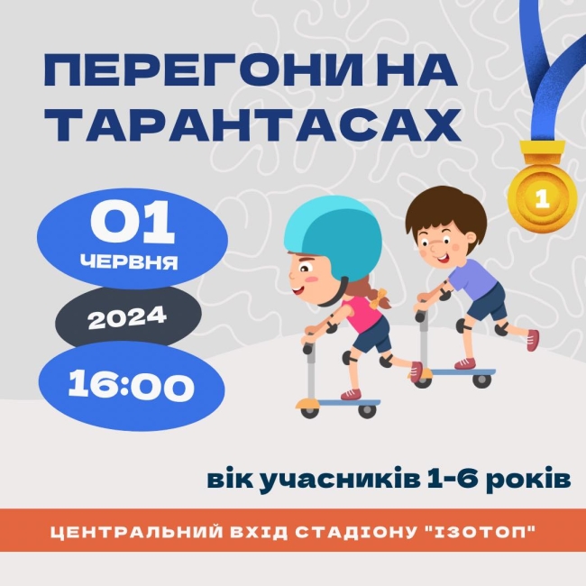Департамент культури, туризму, молоді та спорту запрошує дітей віком від 1 до 6 років взяти участь у традиційних дитячих змаганнях “Перегони на тарантасах”, які відбудуться 1 червня  о 16:00.