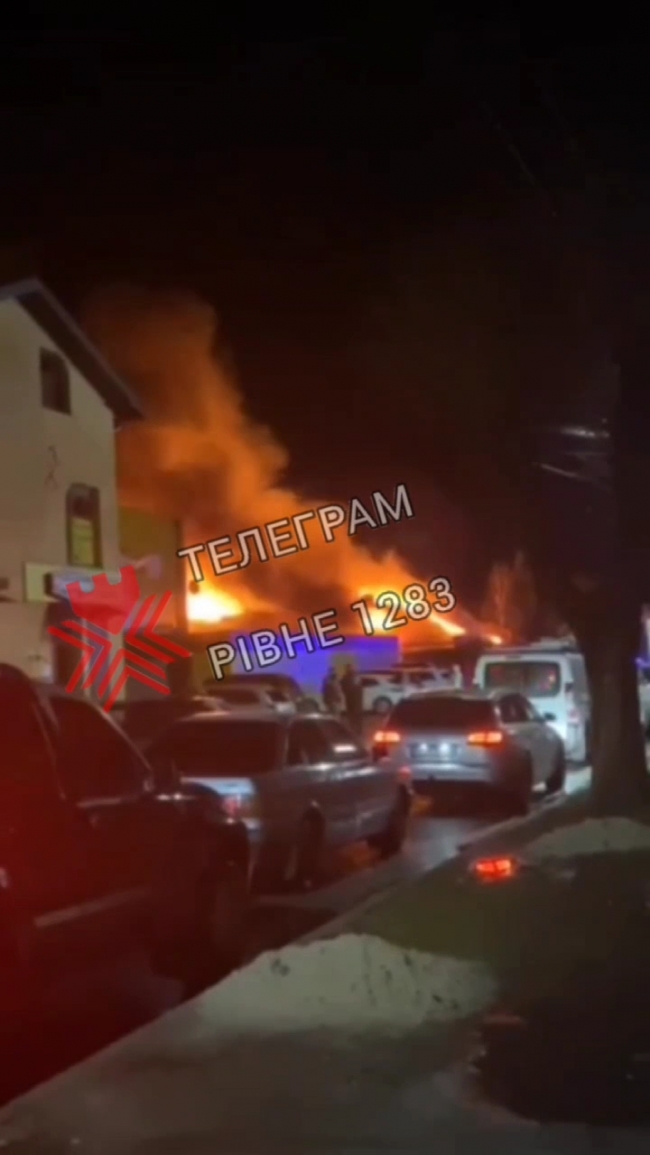 – Смт Млинів. Пожежа на так званому базарчику . Горять торгові площі, – йдеться у компентарі під відео.-