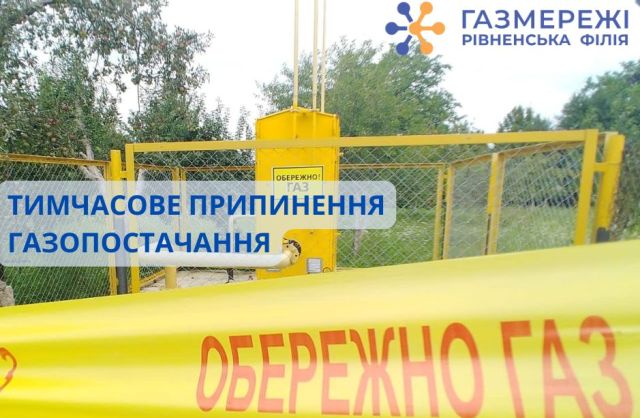 З 07:00 5 листопада буде тимчасово припинено газопостачання (розподіл природного газу) до осель споживачів природного газу у селищі на таких вулицях: Покровська; Поліщука; Заводська; Л.Українки; Кривоноса; Зарічний; О.Довгалюка; Загребельна;