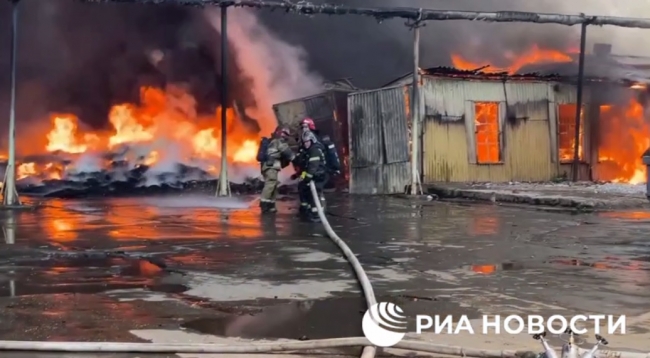 Як повідомляють пропагандисти «РИА Новости», вогонь був настільки сильним, що перекинувся на склад з автомобільними шинами.