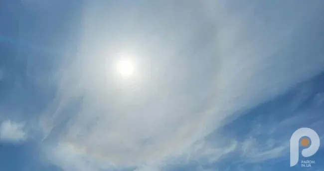 Додамо, що сонячне гало — це оптичне явище в атмосфері, яке виглядає як світле коло навколо сонця, спричинене заломленням і відбиттям світла в льодяних кристалах, зазвичай у перисто-шаруватих хмарах. Згідно з народними прикметами, поява гало може вказувати на зміну погоди, найчастіше в бік погіршення.