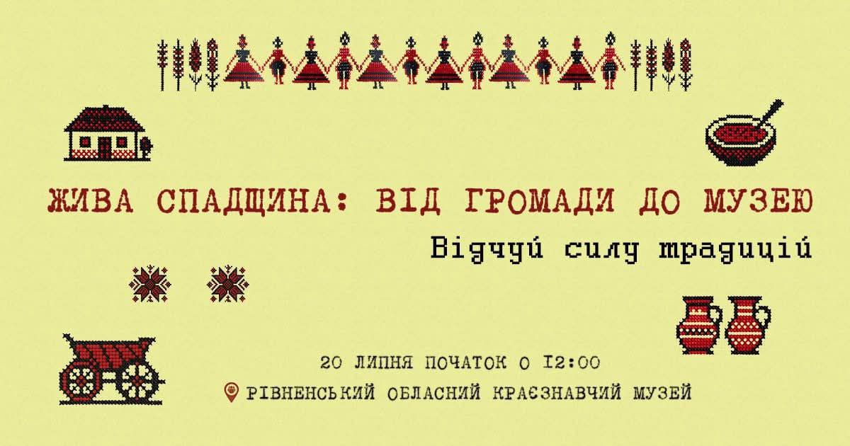 Проєкт “Жива спадщина: від громади до музею” стартує 20 липня о 12:00. Із автентичних страв анонсують буцики з медом, джуру, гречаний кисіль, сходні млинці, страви на мангалі, місцевий мед.