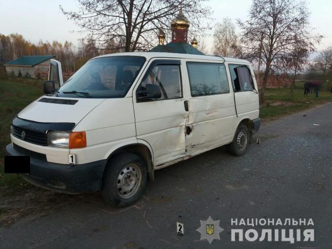 23-річний водій мотоцикла «Geon» виїхав на зустрічну, де зіткнувся з бусом «Volkswagen T4».