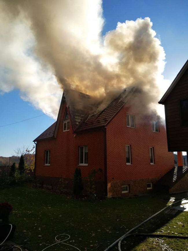 Вони встановили, що горить частина покрівлі двоповерхового житлового будинку. Вогнем частково пошкоджено дах. Жертв та постраждалих немає. Причина пожежі та розмір збитків встановлюються.