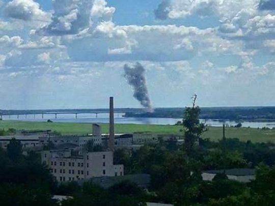 Тим часом у мережі з’явилося відео, зняте на Антонівському мості, де видно наслідки «прильотів».