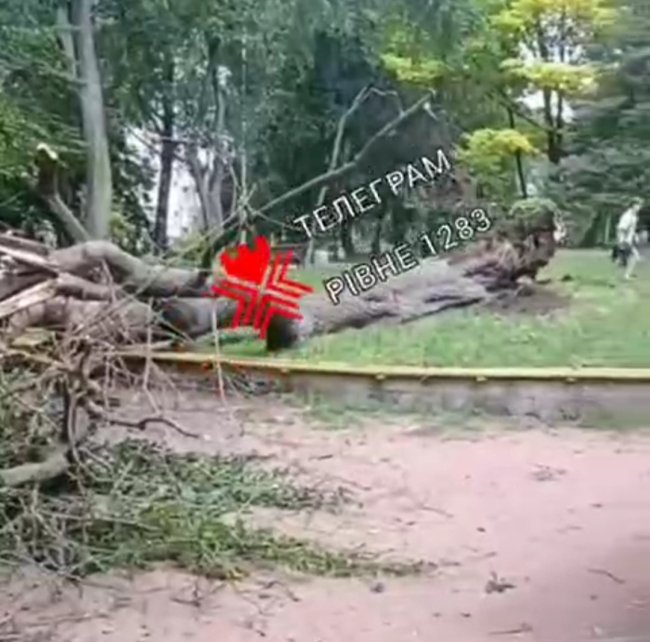 У парку ім. Шевченка в Рівному завалилося велике дерево (ВІДЕО)