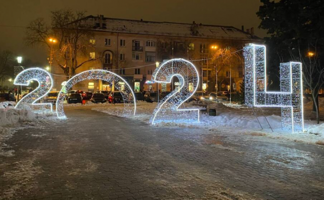 Святкова арка з фотозоною була встановлена в районі «Таємничих підземель» Рівного. Вона складається з цифр 2024, сніговика, ангела та світлодіодних фігур санчат та оленів.