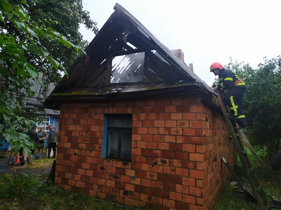 Було встановлено, що горить покрівля господарчої будівлі, існує загроза поширення вогню на поряд розташований житловий будинок. На гасіння було подано вогнегасячі речовини. Завдяки оперативності вогнеборців вдалося швидко загасити пожежу та не допустити поширення вогню на житловий будинок. Вогнем знищено 45 м.кв. покрівлі та перекриття господарської будівлі.