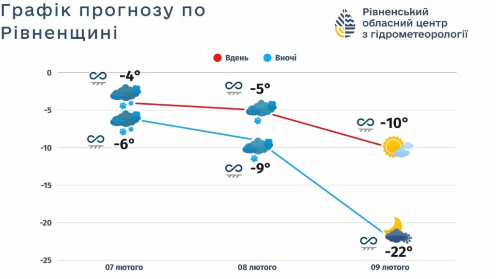 Вихідними Рівненщина ще перебуватиме під впливом фронтальних розділів, що обумовлять опади у вигляді мокрого снігу та снігу. Температура повітря буде знижуватись. Чергова порція арктичного повітря зі Скандинавії спровокує посилення морозів на початку тижня, – пояснюють фахівці обласного центру з гідрометеорології.
