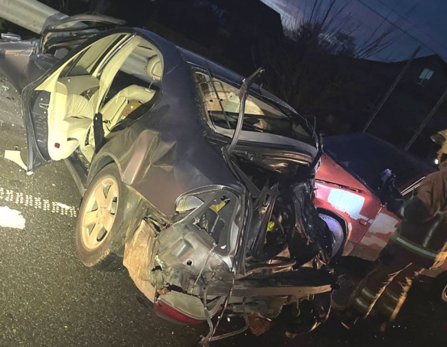 Унаслідок ДТП загинув кермувальник «Mercedes-Benz» — його деблокують рятувальники.