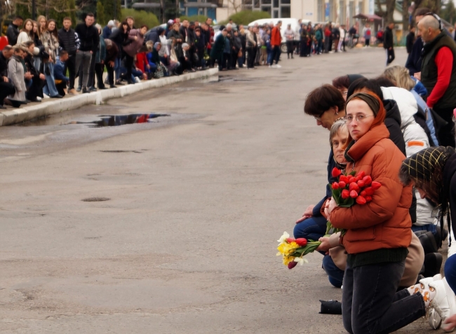 Коли тіло полеглого на війні юнака провозили центральною вулицею міста, де він жив, присутні у скорботі стали на коліна.