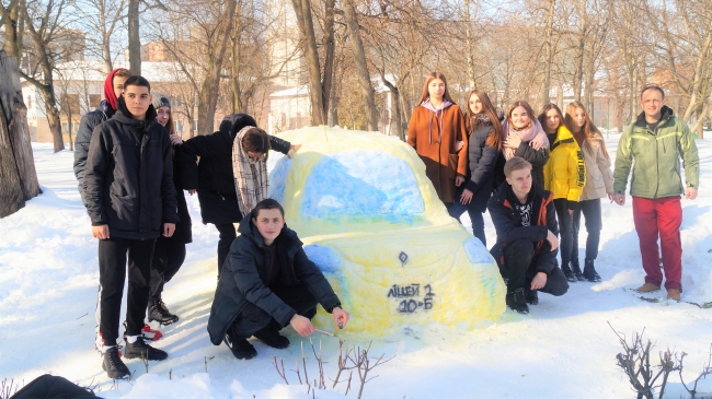 Скульптури ліпили в міському парку відпочинку. Головними скульптурами стала снігова автівка, будинок ельфів, символ року – віл.