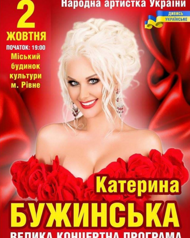 У Рівному концерт Народної артистки України Катерини Бужинської відбудеться у міському Будинку культури вже 2 жовтня, початок – о 19:00.