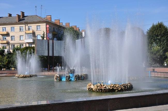 На ньому видно, як в один із новіших фонтанів за кінотеатром «Україна» стрибає пара: хлопець із дівчиною на плечі.