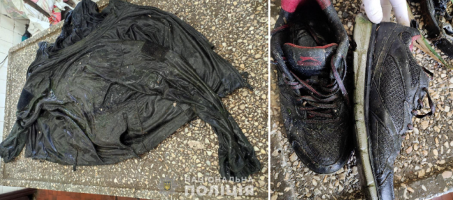 Невідомий був одягнений у тактичну куртку чорного кольору марки «CONDOR» розмір XL,темно-сині джинси, світлу кофту, чорні підштаники. Кросівки темно-сині із червоними вставками 42-43 розміру.