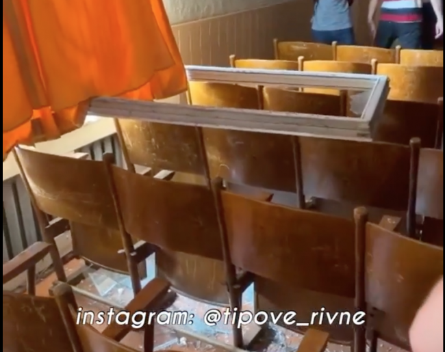 Сьогодні о 14 годині в актовому залі Рівненського коледжу економіки та бізнесу випала віконна рама, внаслідок чого розбилося скло.