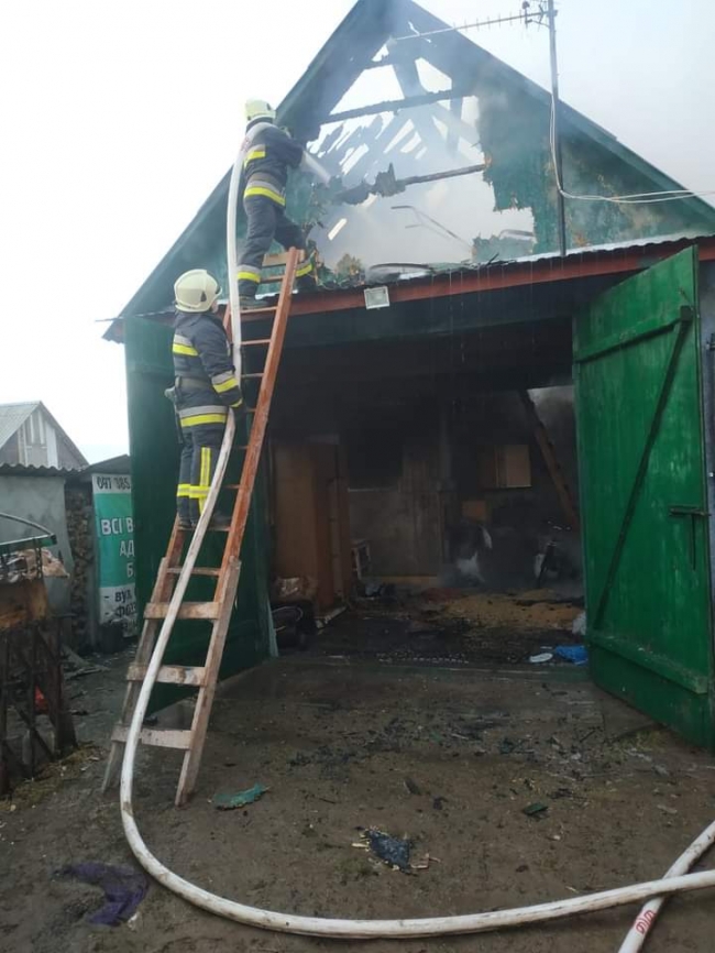Рятувальники встановили, що пожежа виникла у приватному господарстві в приміщені автогаража, розмірами 7х5 м.кв, розташованого на вулиці Клімчука. Вогнем було знищено покриття та перекриття будівлі.