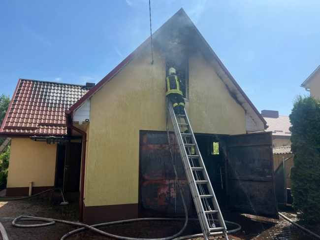 Вони оператвино загасили полум’я, що охопило покрівлю двоповерхової господарчої будівлі.