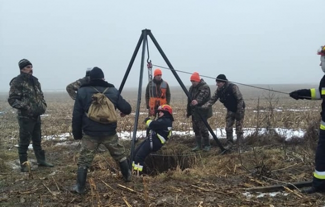 За допомогою спеціальної рятувальної триноги співробітник ДСНС спустився на глибину колодязя та дістав собаку. На щастя чотирилапий не отримав жодних ушкоджень.