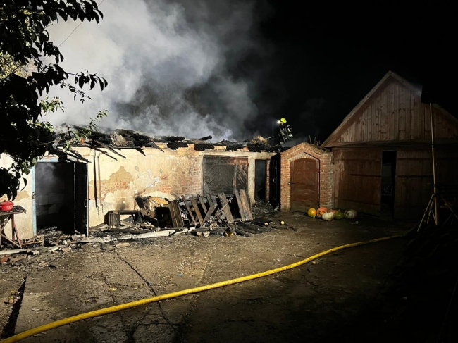– Вогнем було охоплено дах господарчої будівлі. На ліквідацію відразу було подано вогнегасні речовини. Внаслідок пожежі вогнем знищено покриття та перекриття цегляної господарчої будівлі розміром 10х5 м, – кажуть рятувальники.