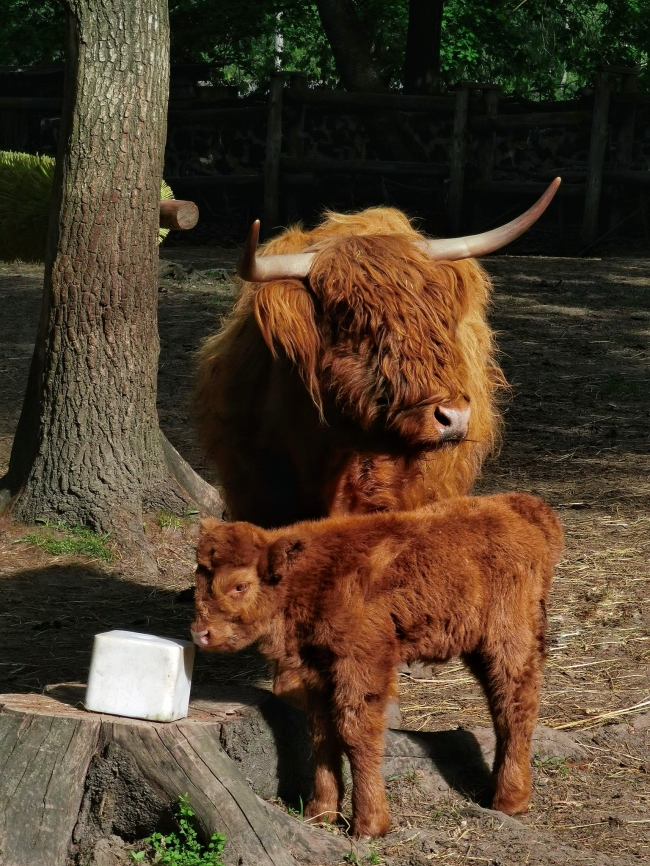 Двоє теляток народилися у родині шотландських корів. Це хлопчик та дівчинка, їм усього по кілька днів.