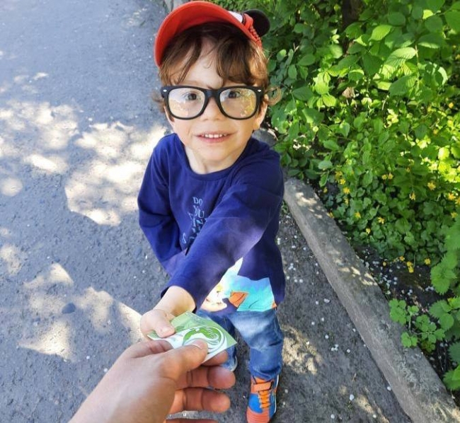 За словами мами хлопчика, і вона, і чоловік мають свої магазини, для реклами яких пара і виготовила візитки. Під час прогулянки вони їх роздавали, а син запропонував допомогти.