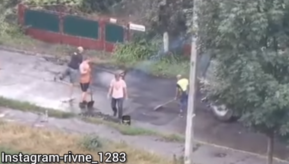 У Рівному асфальтували вулицю під дощем (ВІДЕО)