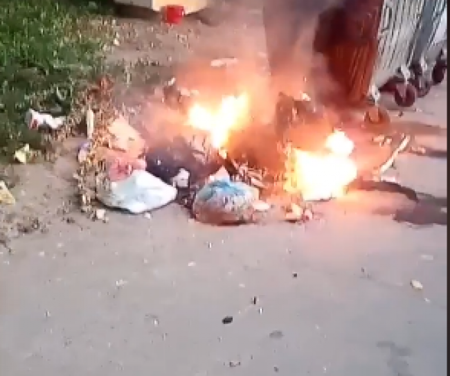 Сьогодні на вулиці Київській, 44 у Рівному, неподалік хостелу «Гранат», невідомі підпалили сміття, яке було розкидане поряд зі сміттєвим баком.