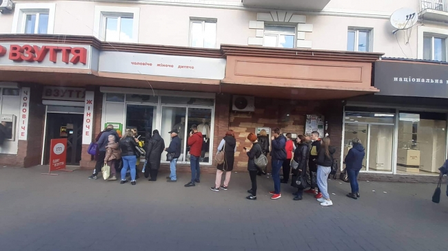 Недільного ранку чимало мешканців міста провели деякий час у чергах, щоб зняти готівкові кошти з банкоматів.
