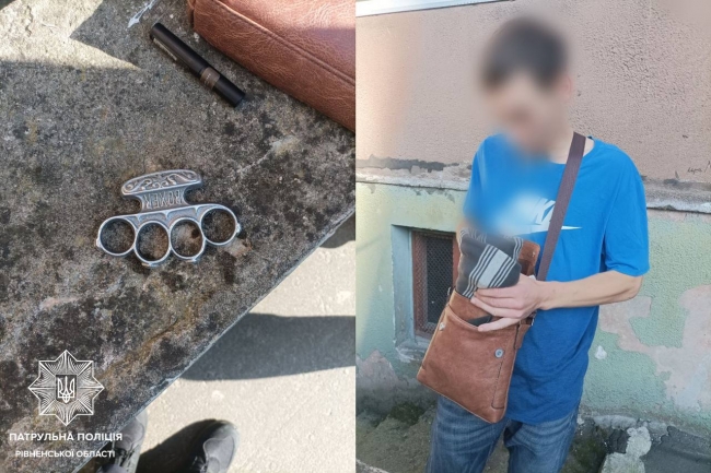 У 32-річного рівнянина виявили предмет, схожий на кастет. Після цього чоловік вирішив втекти, але патрульні його затримали й одягнули кайданки.