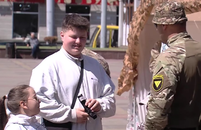 В цей час біля драмтеатру була спеціальна військова виставка, де військові ознайомлювали з амуніцією та дозволяли політати на БПЛ.