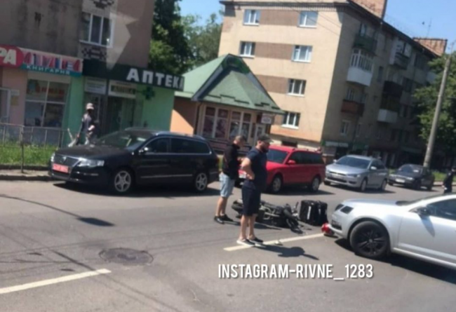 Як видно з фото, яке опублікували очевидці в Instagram-спільноті «rivne_1283», дорогу не поділили легковий автомобіль та мопедист.
