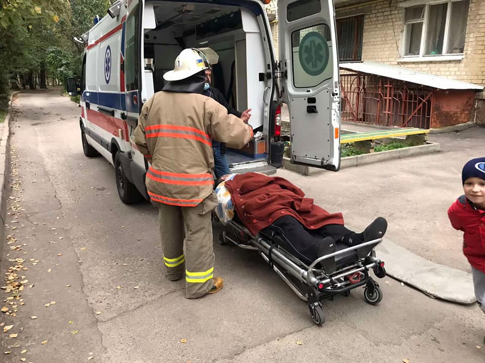 Оскільки той не міг добратися до квартири самостійно, то рятувальники доправили хворого на п’ятий поверх.