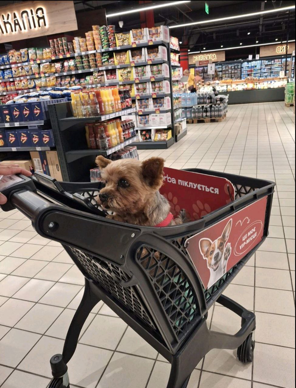 Охоронці не вимагають залишити торговельний зал, а навпаки пропонують взяти спеціальний візок, на який можна покласти і куплені товари, і зручно посадити свого песика, щоб він не бігав по магазину та не заважав іншим покупцям.
