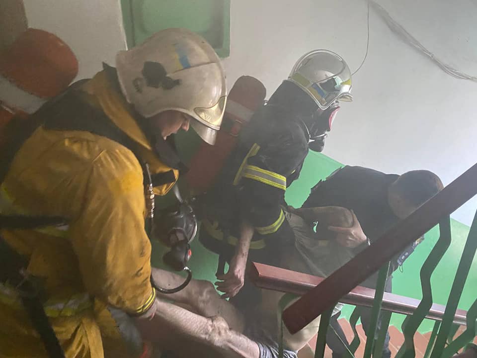 Через сильне задимлення рятувальники працювали в апаратах захисту органів дихання та зору. З палаючої квартири на четвертому поверсі вогнеборці винесли 79-річного пенсіонера.