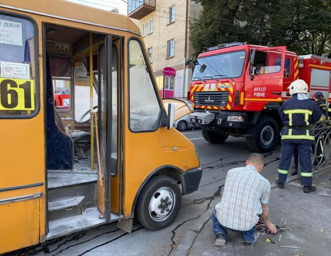Рівне 1 повідомляє, що поблизу “Лагуни” загорілася 61-маршрутка. На відео видно дим біля транспортного засобу та в салоні.
