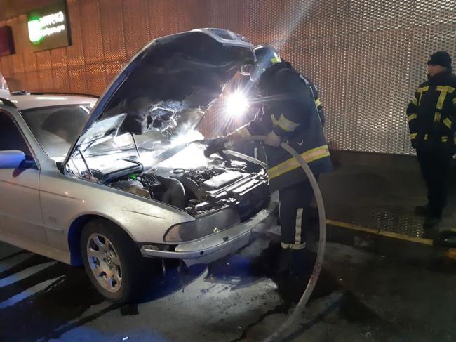 Рятувальники встановили, що з моторного відсіку легкового автомобіля “БМВ” йде дим. О 21:38 пожежу вони загасили.Вогнем пошкоджено моторний відсік автомобіля.