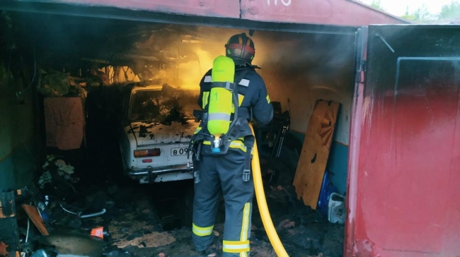 Рятувальники встановили, що вогнем охоплений гараж, в якому знаходився легковий автомобіль.