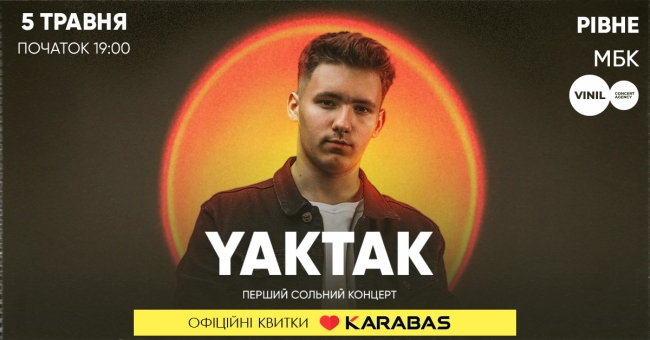 “Пісні YAKTAK влучно поєднуються з життєвими переживаннями кожного з нас! Адже він співає мовою душі, тож у нього є що Вам сказати. Чудовою нагодою стане сольний концерт 5 травня. Побачимось в МБК!”, – запрошують на концерт організатори VINIL Concert agency.