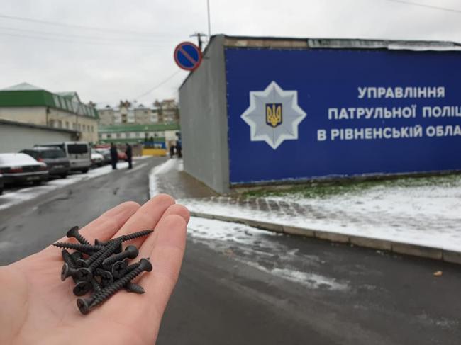 У Рівному хтось розсипав саморізи перед управлінням патрульної поліції, щоб ті пробивали колеса