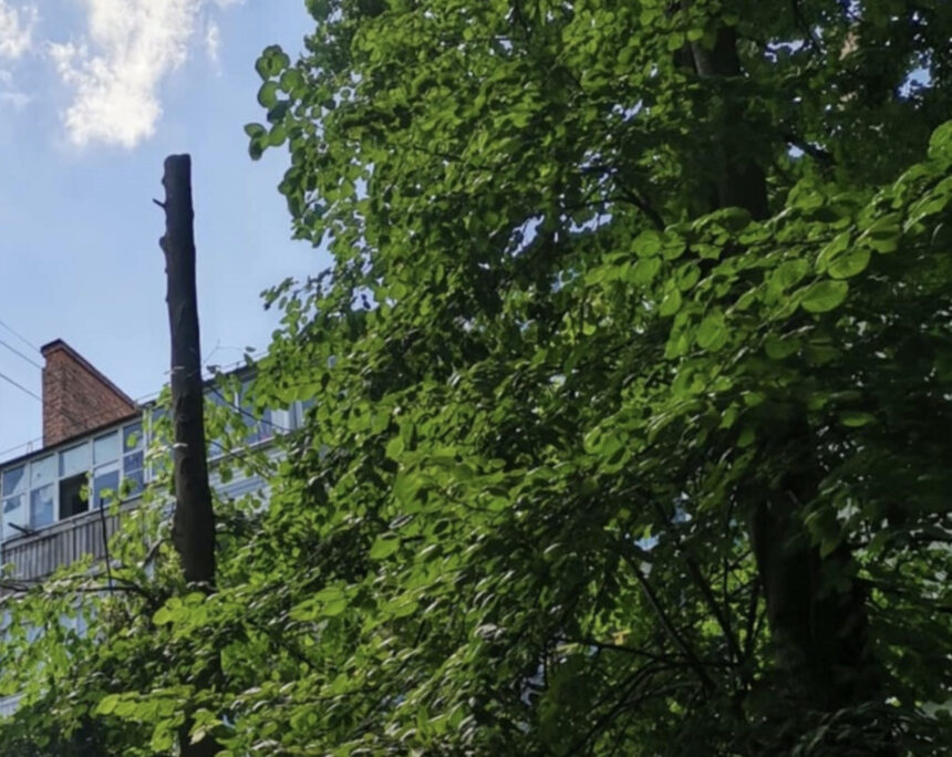 Під час перевірки інспектори з’ясували, що на території двору незаконно обрізали крону липи діаметром 42 см. Через таке кронування дерево було пошкоджене настільки, що перестало рости.